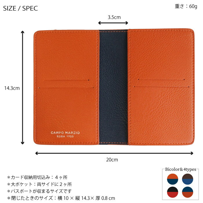 CAMPO MARZIO /カンポマルツィオPASSPORT HOLDERバイカラーのデザインがアクセントとなり、シンプルながらも“普通のものとはちょっと違う”を実現したパスポートホルダー。